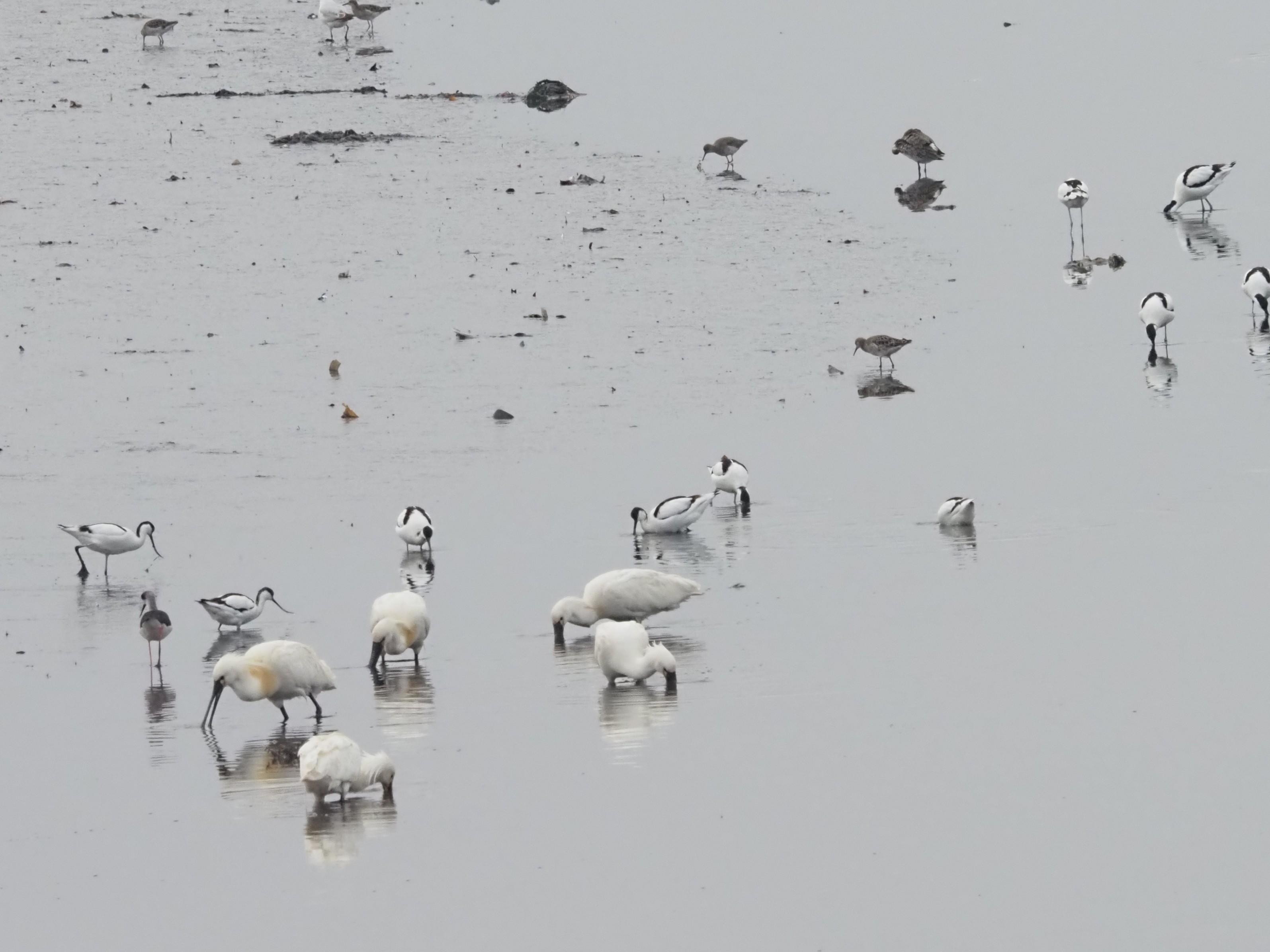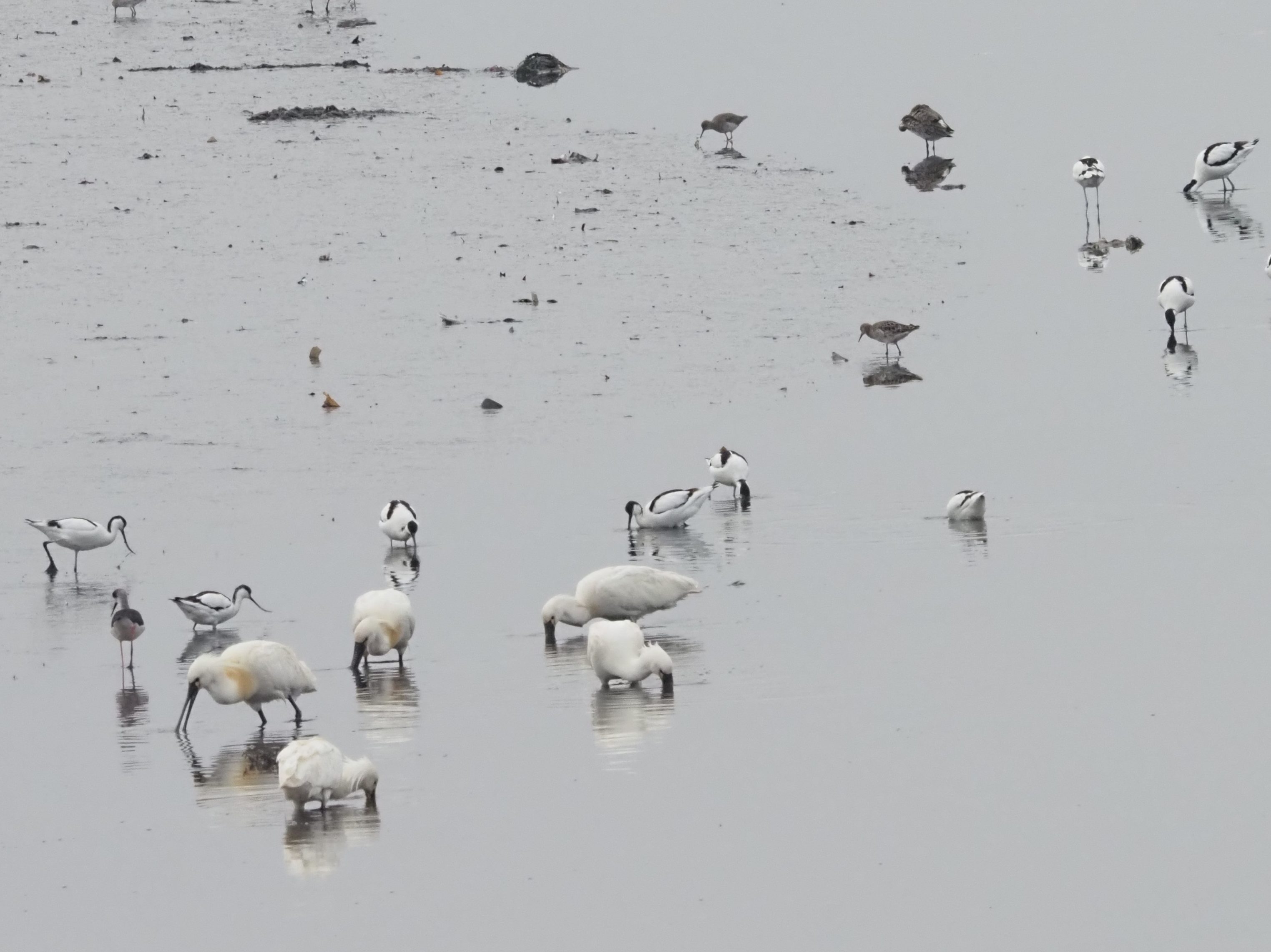 Stilts, Black-tailed Godwits, Ruffs + Common & Spotted Redshanks feeding in Souss RiverA lovely view of the Souss River