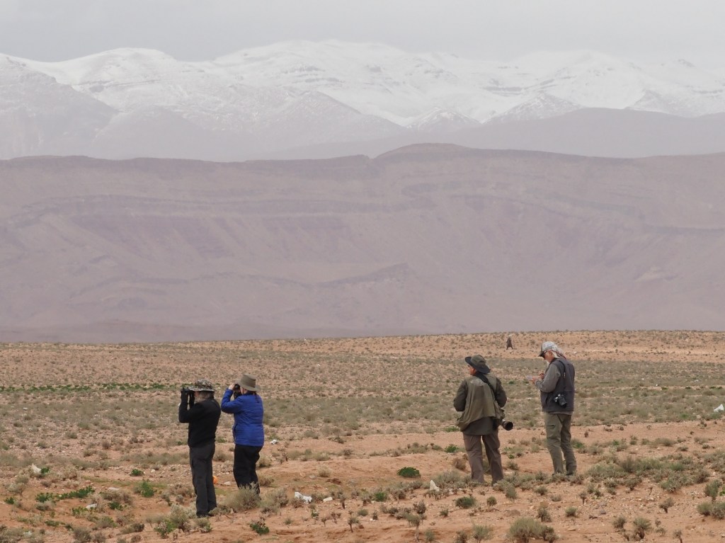 Overview. Our 8th tour to Morocco explored again one of the most popular routes in Southern Morocco. Combining excellent mountain birding in the Atlas with the stunning variety of birdlife living in the transitional plains between the mountains and the Sahara, this tour embraces a good array of habitats that provides excellent chances for all the main specialties living in the area. This year, the tour was marked by an unusual cloudy weather and very cold temperatures. During our stay in Agadir, we had general rains in the area, and the snow was appearing a pair of times during the tour. This situation was translated in a poor bird migration, with several trans-Saharan migratory species showing very thin numbers, when not being totally absent from our trip list. Despite the general unusual weather, we got excellent views on all specialties out of Thick-billed Lark. The tour had also a pair of very interesting birds, as males Little Crake and Pallid Harrier were seen both around Ouarzazate.