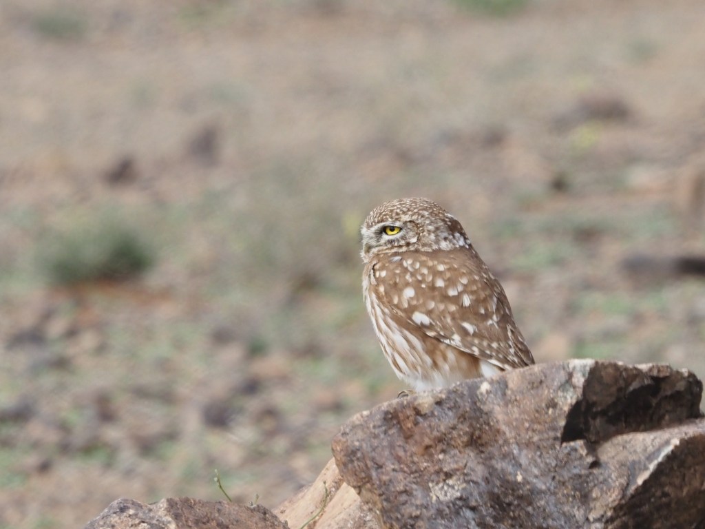 Trumpeter Finch is, un many locations, the only one Finch aroundTemminck’s Lark, always a treatLittle Owl in the plains South of Boulmane. Please note the light brown coloration