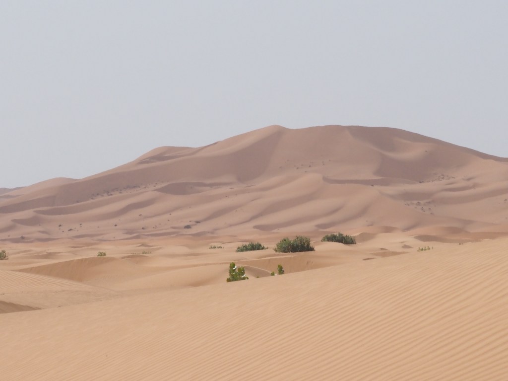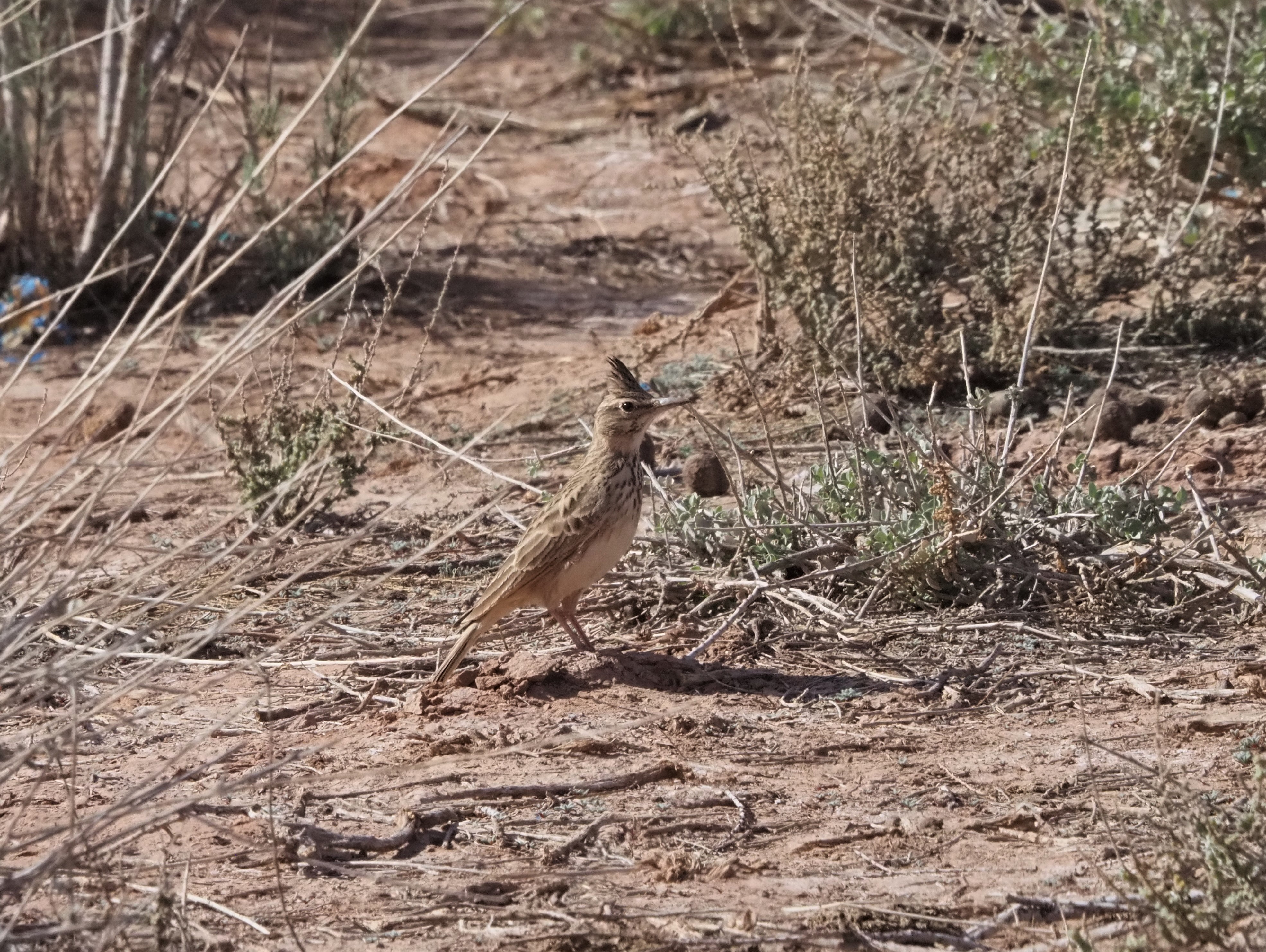 Long trasfer to the first dunes of the Sahara. En route, we went for a stop looking for the often secretive Streaked Bush Warbler (often referred in this area as Saharan Scrub Warbler and a full species regarding some lists). We had some walk in the sandy terrain surrounded by goats and enjoying several Great Grey Shrikes, when we heard the call of the birds and after some running we all got good views on a family group as there were moving on the ground or inside the tiny, spiny bush.