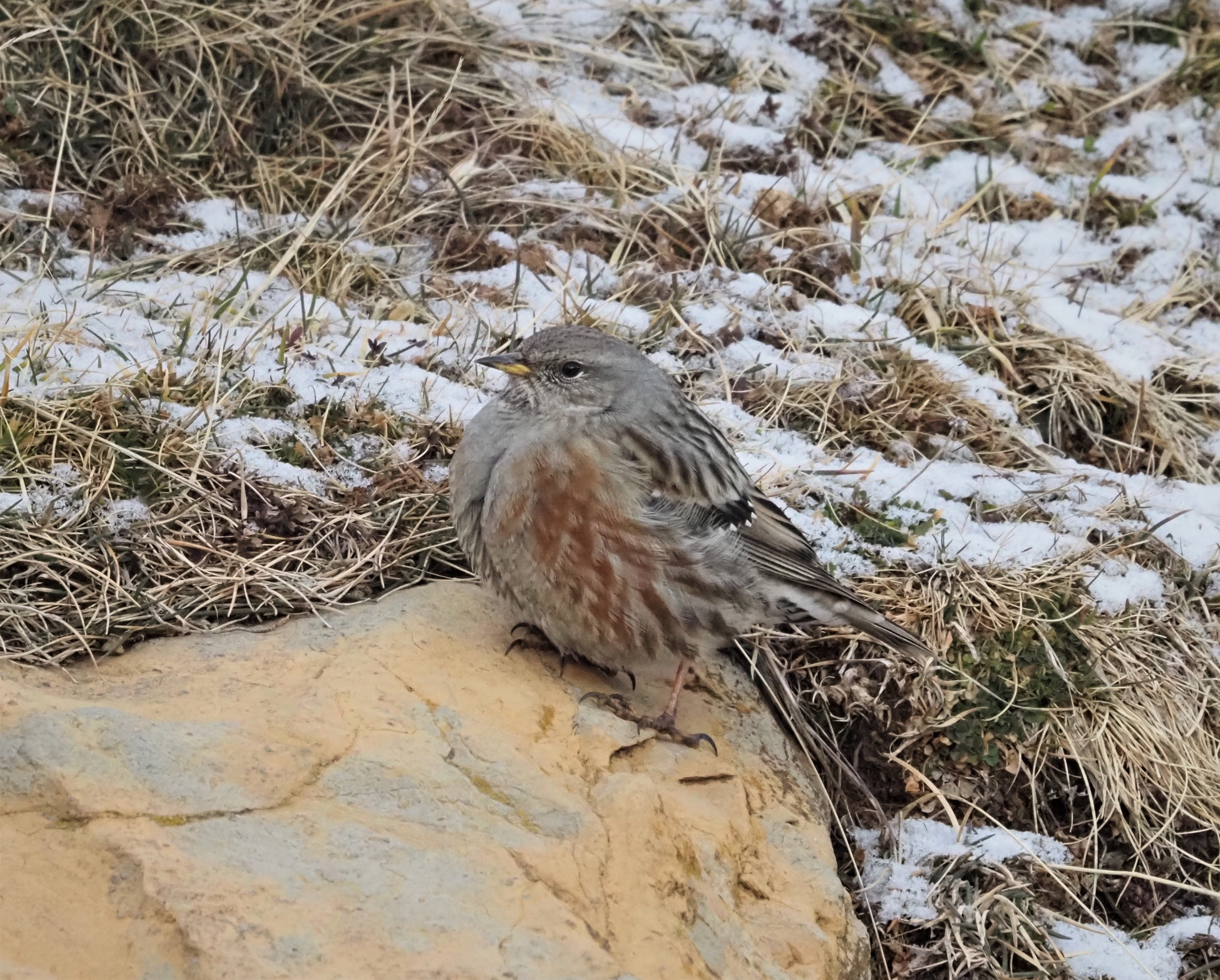 Alpine Accentor (Prunella collaris) showing nicely in our first day in the mountainsSnowFinches (Montifringilla nivalis) feeding on the slopes. Image by Carles OliverRock Bunting (Emberiza cia) is a common bird in the broken slopes around the Pyrenees.