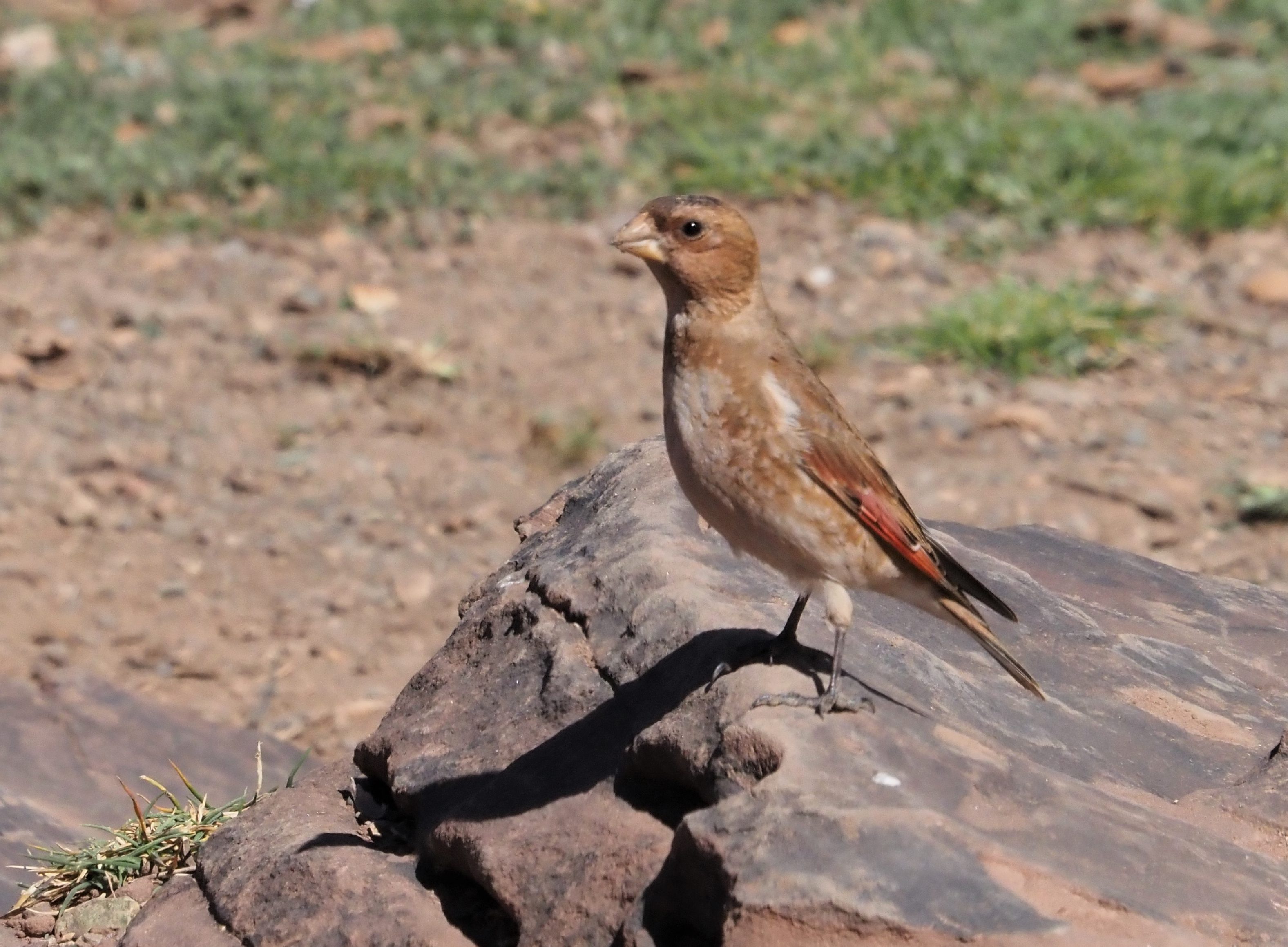 We decided to do a lunch stop, and enjoy the good food up in the mountains. After lunch we went for a second shot in the plains and we were definately luckier, since a female African Crimson-winged Finch appeared sitting on a wire and, after a bit of walk, we all enjoyed excellent views on the bird! It was certainly strange to have a single individual here, contrasting with flocks that we normally find but never mind. We really took that!