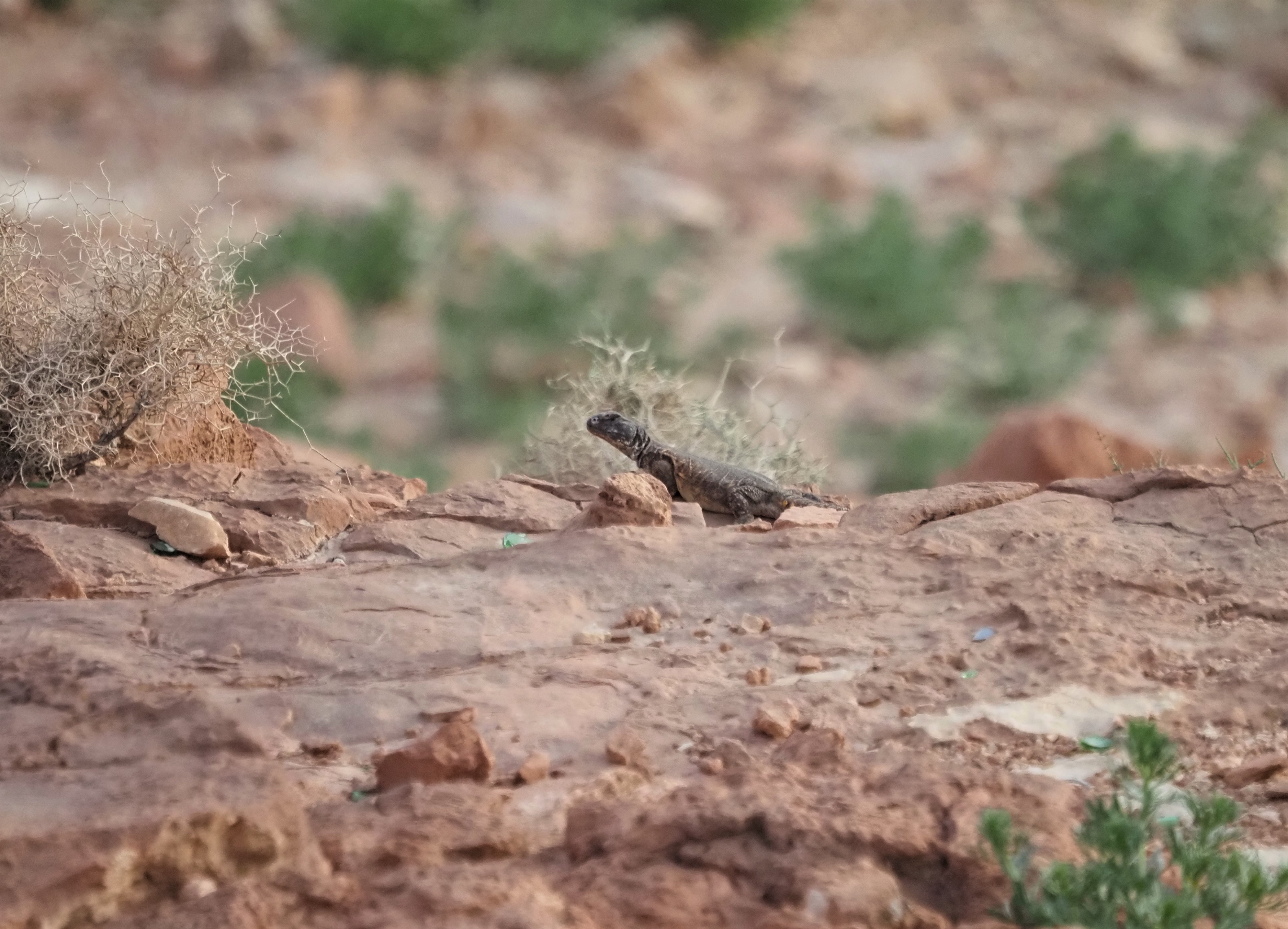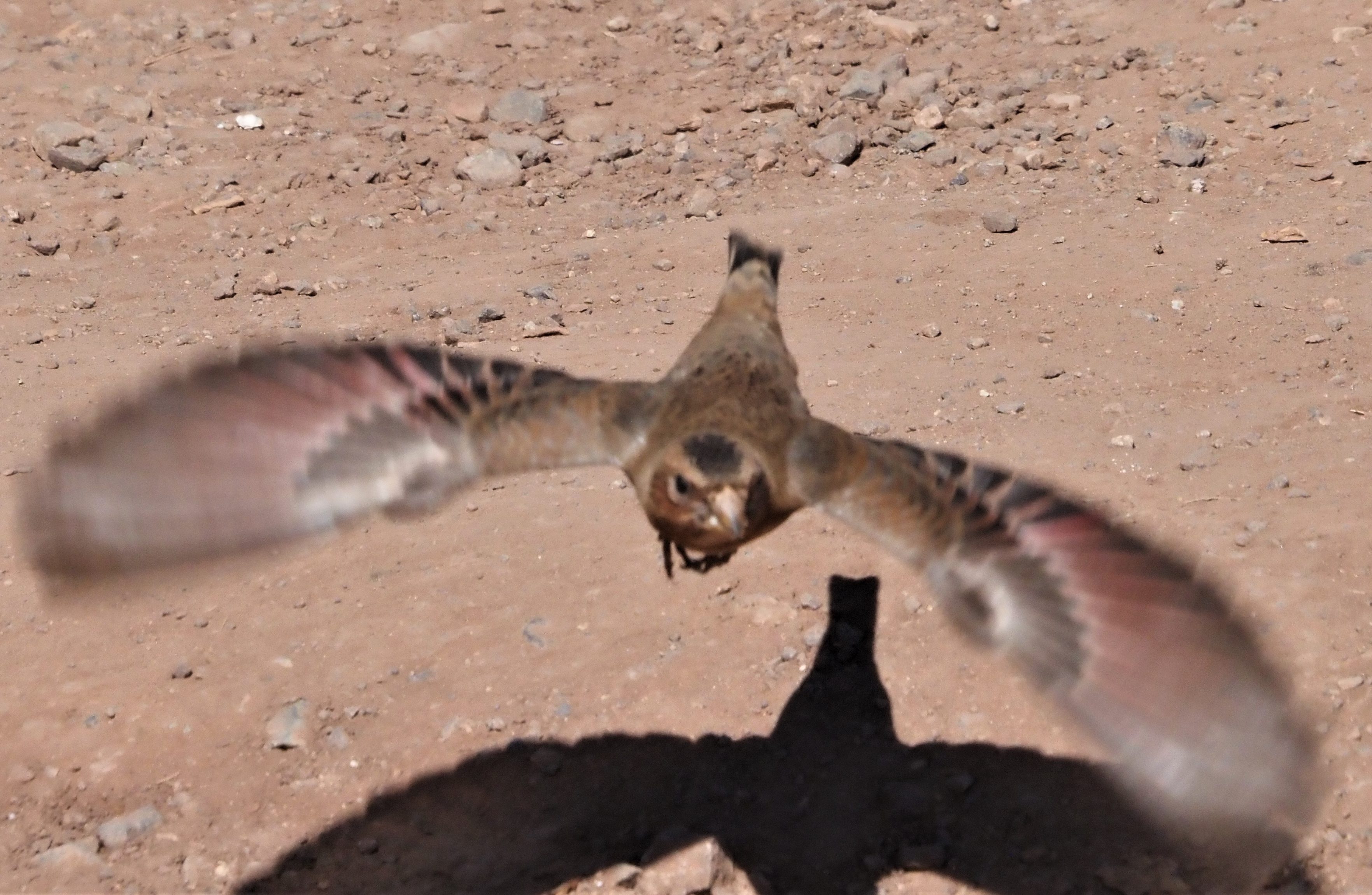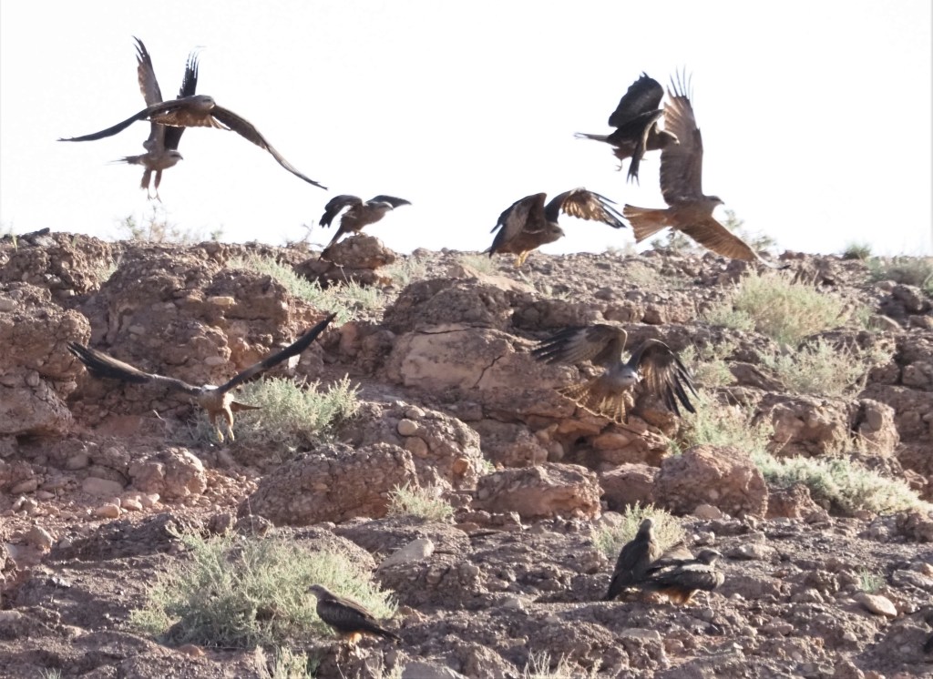 The temperature climbs up and we go to explore to the gorges around expecting to find also some shade. Just after arriving a Lanner Falcon flew at short distance above the group, trying to catch a Desert Lark.