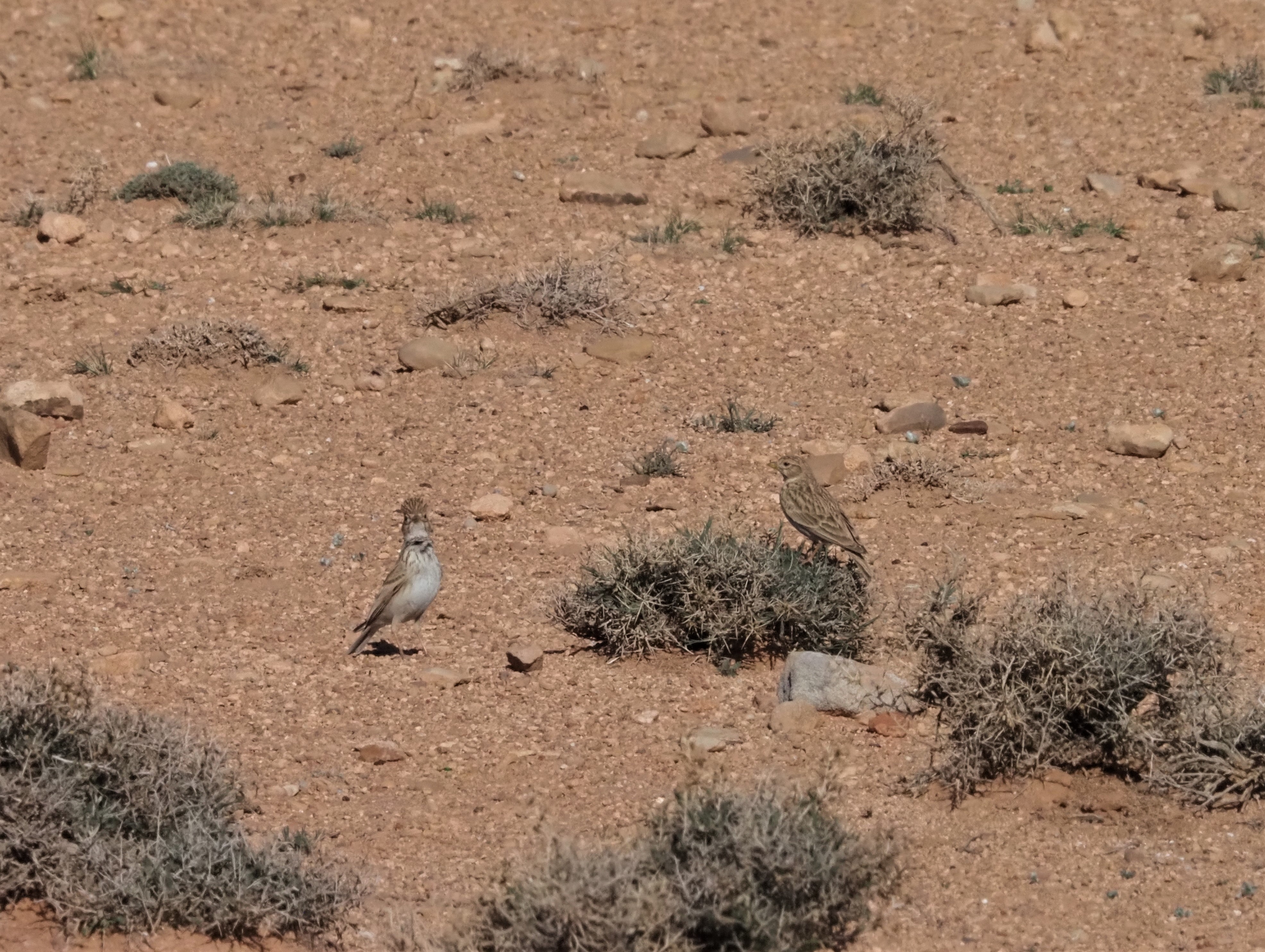Saharan Scrub Warbler lives in low density in desert Scrub lands and barren slopesBlack-bellied Sandgrouses blind perfectly with the stony plainsThis year Greater Hoopoe Larks were really common around Boulmane du Dades