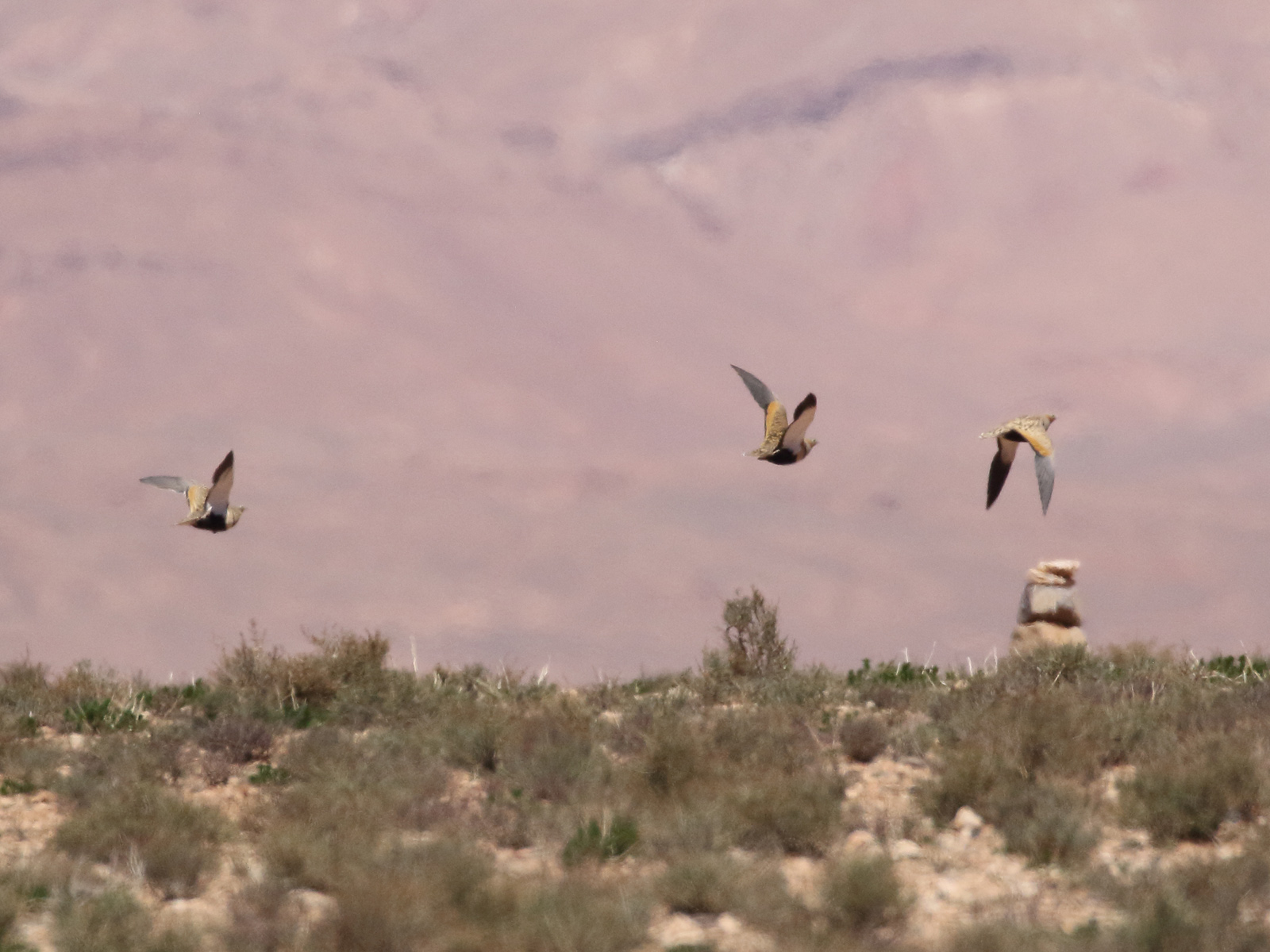 Day 6. Full day enjoying the steppes and gorges around Boulmane. In the morning we had some stops in the plains, adding great views on Trumpeter Finches and Red-rumped Wheatears to our list. We were only 3ºC but the birding was still great, with several Temminck’s Larks around and migratory Greater Short-toed Larks feeding around. A short visit to proper fields around produced 8 Black-bellied Sansgrouses and, for our surprised, they were joined by 1 Pin-tailed Sandgrouse!