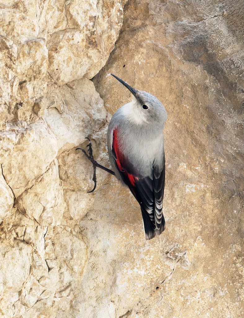 Wallcreeper (Tichodroma muraria), without doubt the most sought-after bird in the mountains!