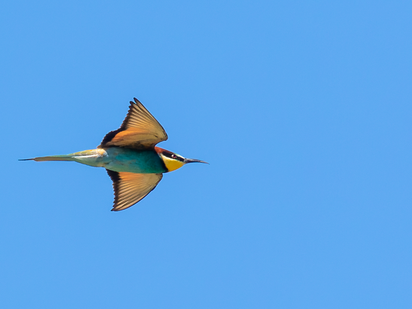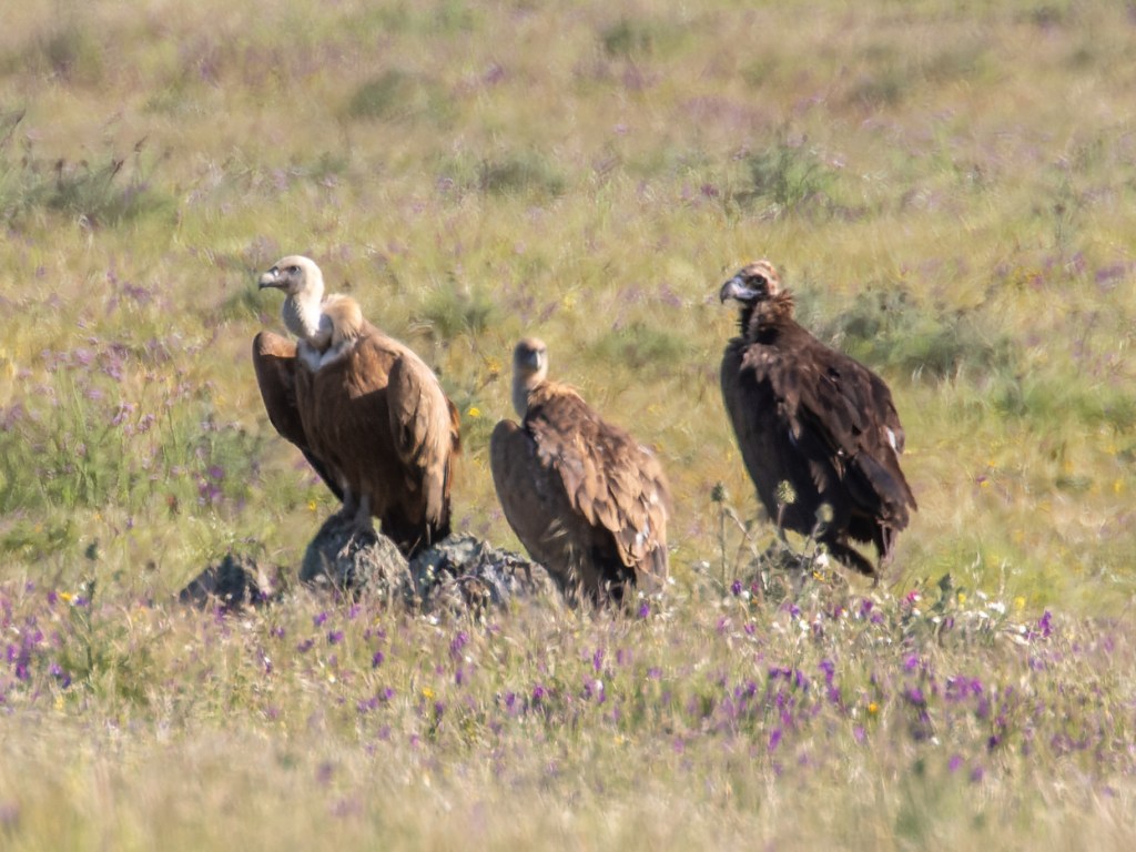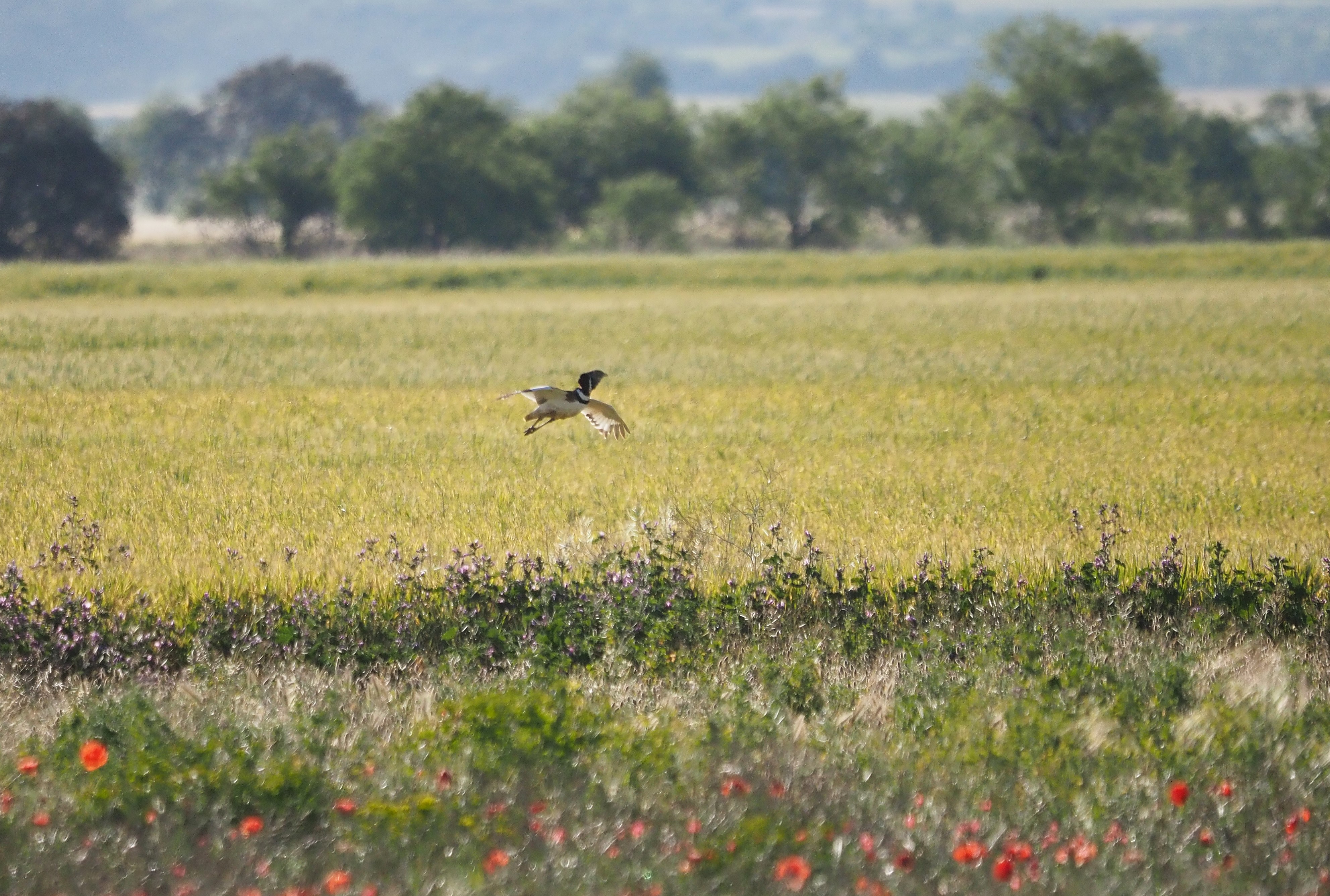 Decided to escape the fog, we drove East to check another place in Los Monegros. There, around Bujaraloz, we went in the search of the small population of Great Bustards that subsists in the area. Here it was sunny and it only took us 5 minutes to find a lovely flock of 17 males walking around in a wonderful field full of flowers. After enjoying this great birds we took our time to check a pair of corners around, where we found more Pin-tailed Sandgrouses but also Merlin and 1 Golden Eagle.