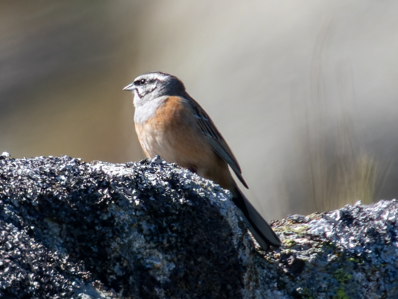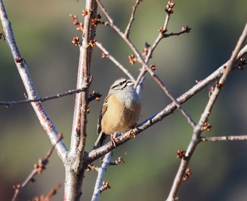 After this very nice first stop, we headed up into the hillsides. But our route became harder than expected. Our track was damaged during the earthquake in late 2023 but now we are also facing some strong rain. As we keep gaining in altitude, the rain becomes icy rain and, later on, snow. Halfway we made a stop in a typical place for Tristam’s Warbler but the weather conditions are far from average.. Still, a small patch of blue sky allows some birding activity, and this is translated in a showy male Blue Rock Thrush, joined by the first Moussier’s Redstart of the trip and a wonderful Rock Bunting. 3 species within a few inches from each other! This very nice sight aims us to follow up the road. There are only 5 miles left to Oukaimeden ski resort, but this is when the snow becomes very strong, reducing the visibility both on the tarmac and in the air. We took advantage of this horrible weather conditions to taste our first tajin of the trip in a road restaurant, and since the weather keep getting worst we decided to quit the upper part of the road and go down to the valley.
