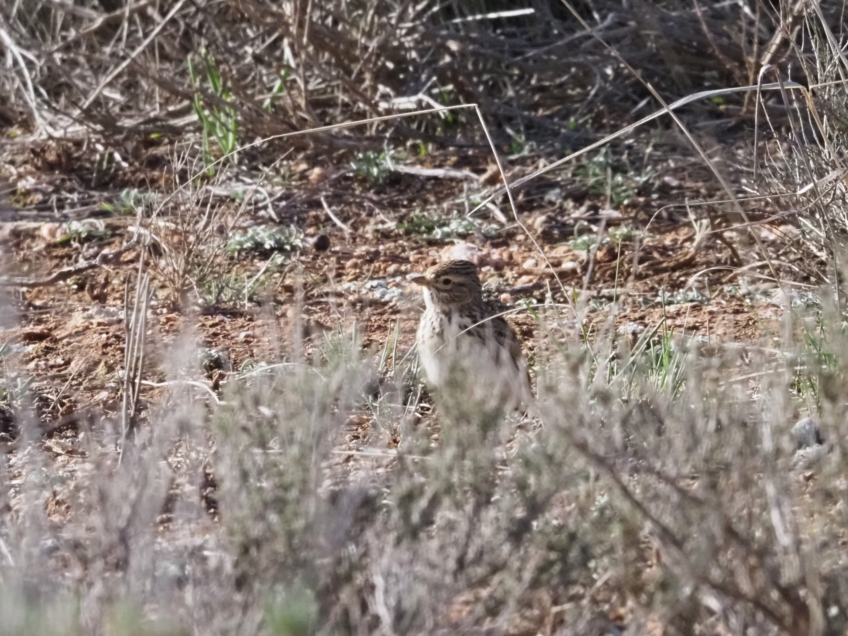 Day 5. Last morning of the trip before heading back to Barcelona Airport. This morning was devoted to explore the wonderful habitat of low, sparse scrubland where the poor understood Dupont’s Lark lives. This species is to be found in poor soils with a rich gradient of salt on it, resulting a landscape of low, scattered scrubs. The songs of both Calandra & Mediterranean Short-toed Larks were constant in the air. The morning was sunny, and the temperature was higher than the day before. We spend some time exploring the area by combining short walks and slow drives, and after less than hour we were enjoying a Dupont’s Lark while feeding on the ground. It was interesting to see the bird excavating the soil with powerful movements of its whole body, pushing its long bill into the soft soil to get a small prey before starting its short, fast runs between the tussocks of grass.
