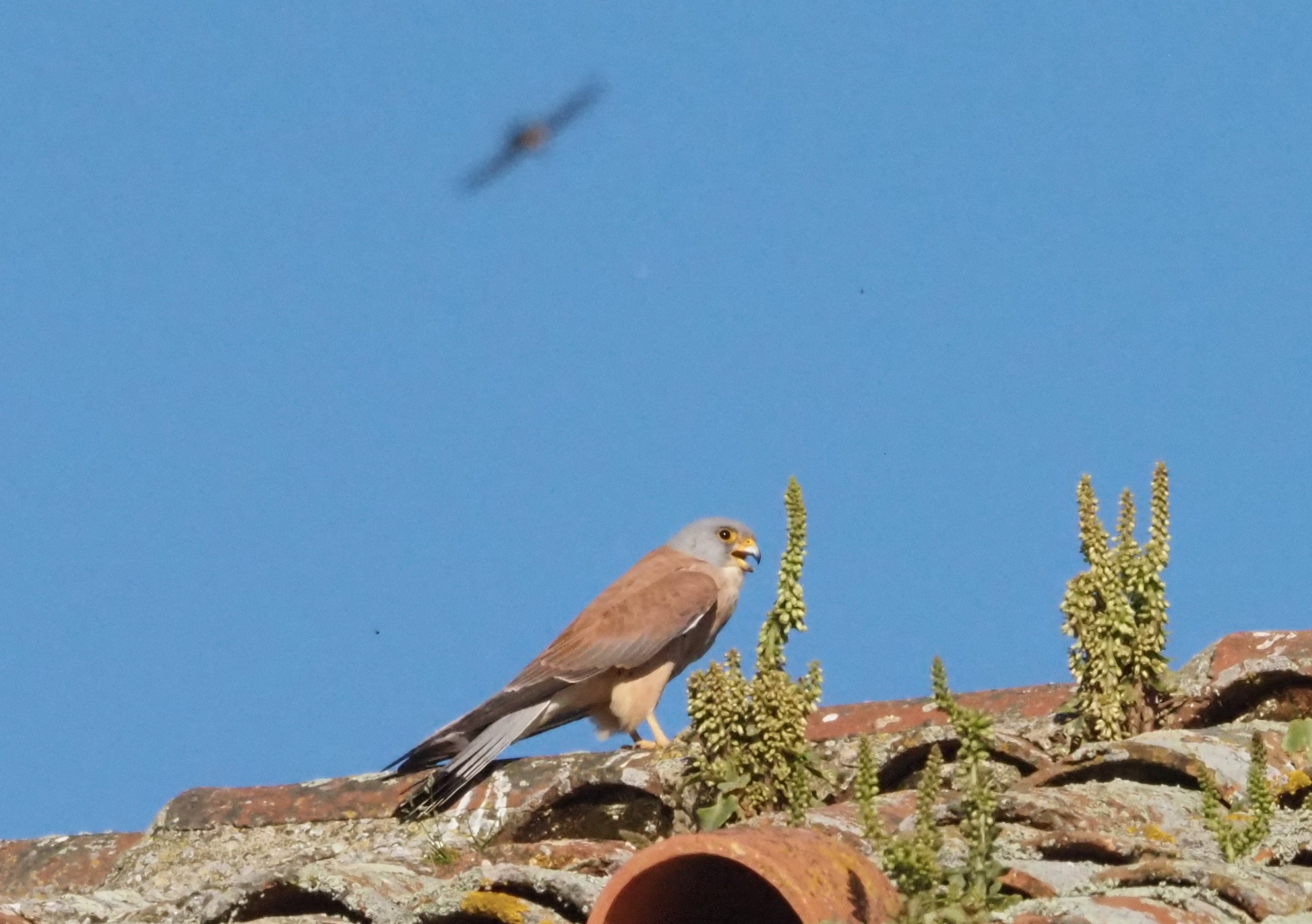 Back to the lane, we kept doing our way up until a large flock of Red-billed Choughs came to us in a wonderful aerial spectacle. The birds were not only playing with the wind in the slopes, but also harrasing an Atlas Buzzard (still considered a race of Long-legged Buzzard, but who knows for how long). A fast stop by the road was required, and happily all the tour participants could connect with this amazing bird of prey, clearly smaller and short-winged than nominals Long-leggeds. But we were still luckier when a Barbary Falcon joined the show for a while, and offered nice views while flying quite lower than the Choughs themselves!