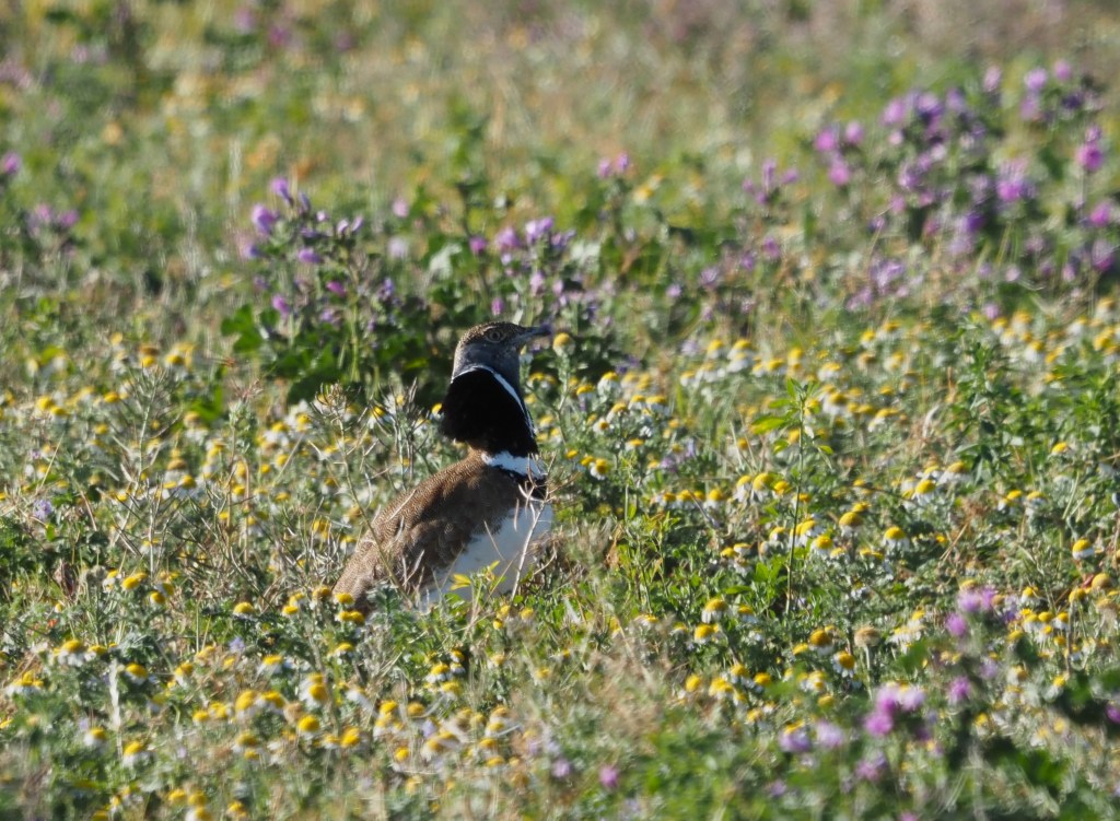 A small flock of Little Bustards had been some weeks feeding in a field nearby, and we covered the short distance to enjoy lovely scope views of 7 of this endangered bird, another victim of the farming intensification in Europe.