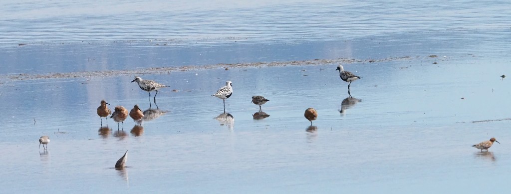 It was quite a surprise the good number of Black-tailed Godwits in the estuary feeding along with several Black-winged Stilts and Pied Avocets. A minimum of 48 Ruffs were also counted, and 27 Curlew Sandpipers. 3 Spotted Redshanks were also noted along with many Common Redshanks, Grey Plovers, Eurasian Whimbrels and some Wood Sandpipers. A careful scanning revealed also 1 Temminck’s Stint, 2 Red Knots, 4 Eurasian Curlews, 4 Bar-tailed Godwits and a flock of 7 Little Stints. Surprisingly we only counted 4 Common Ringed Plovers in the whole estuary!