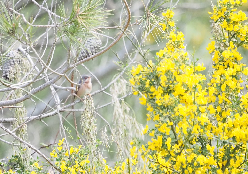 En route we made a stop in a stream. The weather was clearly better than in previous days, as the wind was totally stopped. And this spot was fulfilled with migratory passerines. Here we got 10+ birds of 7 species in a single tree: W Subalpines & W Orphean Warblers; Common Whitethroat; Willow & W Bonelli’s Warblers; Common Chiffchaffs and some very tame Iberian Chiffchaffs. The rank vegetation was having tens of Sedge & Common Reed Warblers moving around. Pied Flycatcher was a new species for the tour.