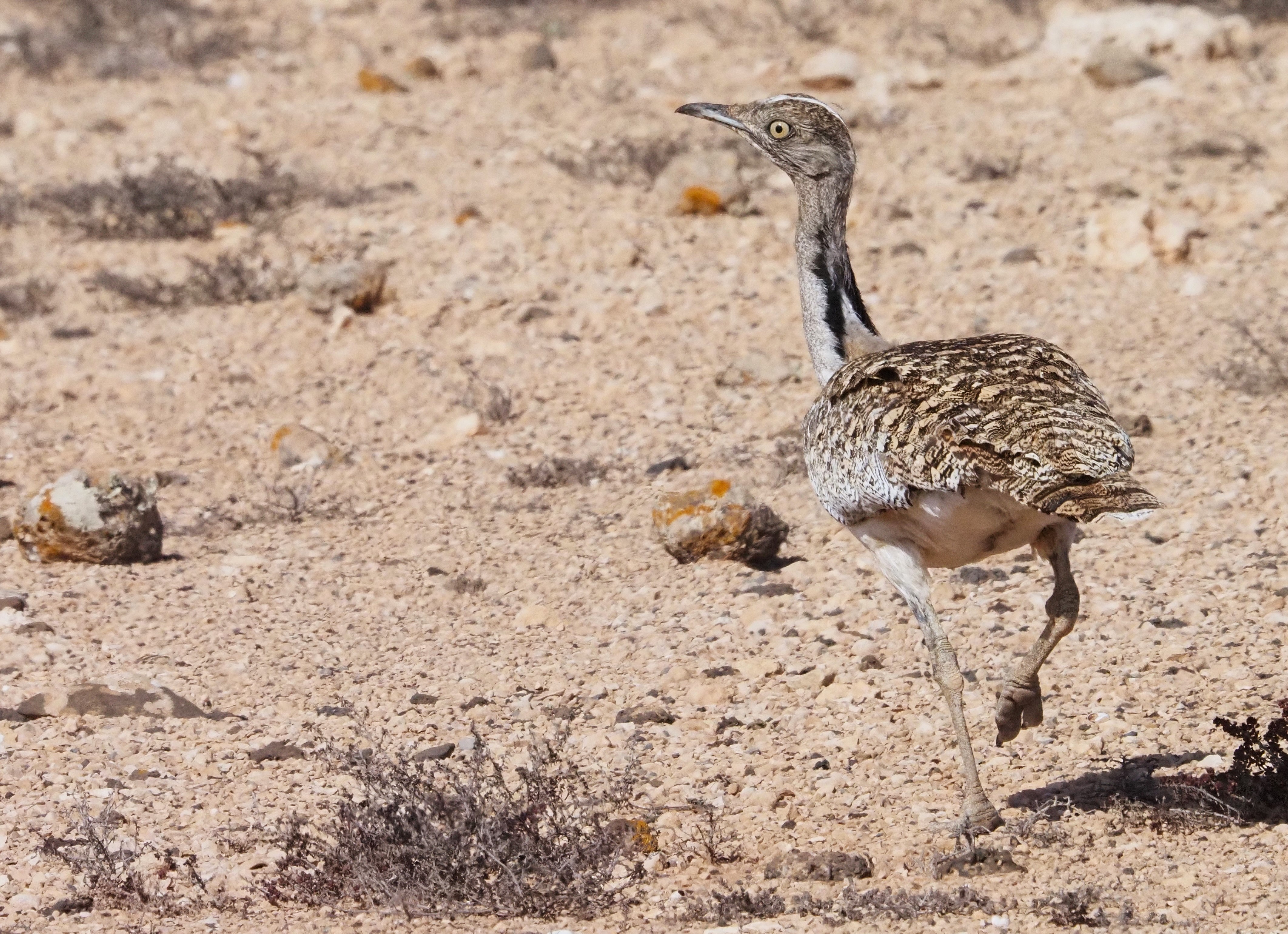 Early in the morning we went for a stroll around the accommodation, a typical place for Fulvous Blabbler. Soon, we got to see one of them, providing really good looks. From here, we moved into a typical place for African Desert Warbler but we failed again. Anyway, this could be the best fail ever, since a Fennec just came out from nowhere, crossing in front of the car and letting us decent views! We could count ourselves lucky to see it, even without trying it!