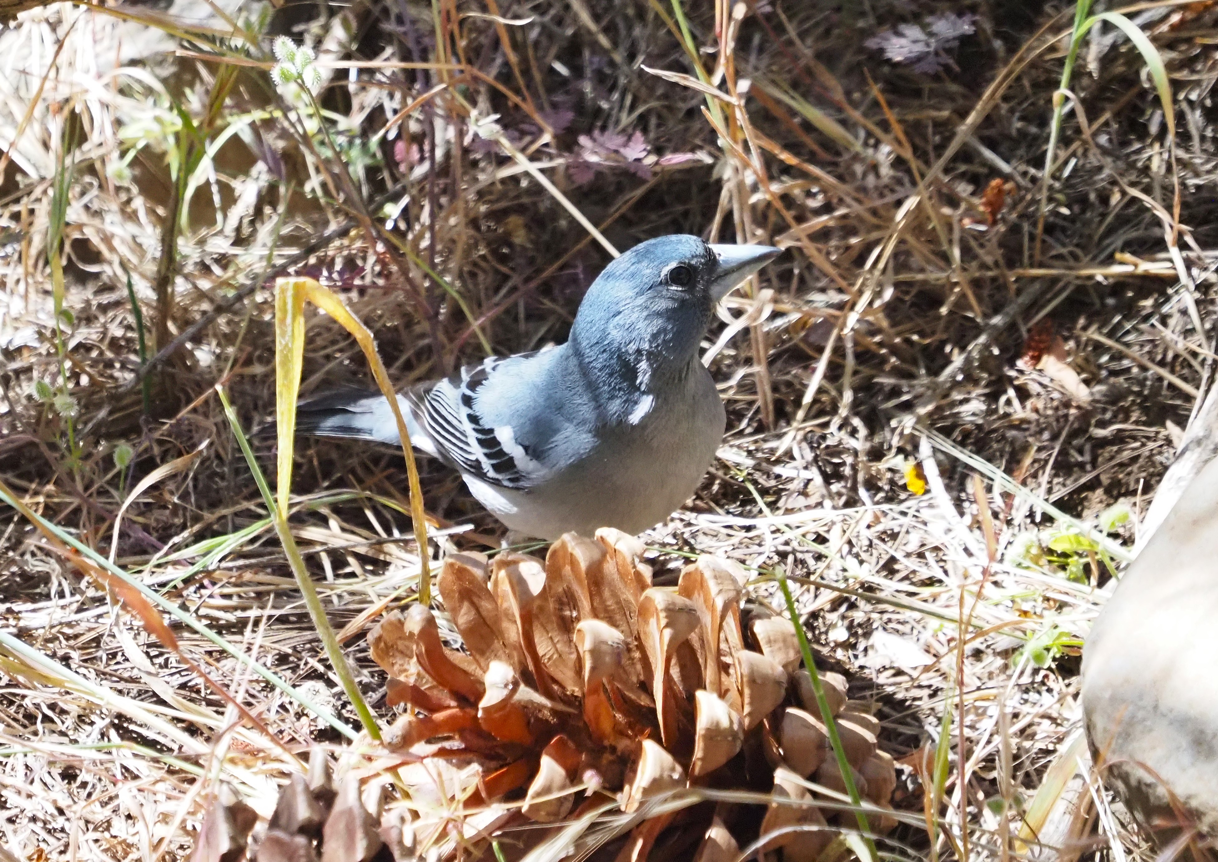 When we arrived to the mountain pass, we found chunky three birds feeding by the tarmac. 3 wonderful Snowfinches were right beside us, but unfortunately decided to flew off and down the slope. From here we decided to go for a short walk. Common Ravens were seen around, and a Peregrine Falcon appeared in a fast, low flight going down the slope in a mission. Up to 10 Eurasian Griffons were also seen exploring the thermals before a large flock of 60+ Snowfinches suddenly appeared in a small hillside some 150 metres away from us, and started feeding on the ground. We all enjoyed very much the finch spectacle with several calls, short flights and even fights. We waited a bit, not moving, and we were rewarded with the birds coming down the hillside just beside the tarmac. After 10 minutes of observation, the birds simply decided to go up the slope again, and disappeared beyond some large boulders!