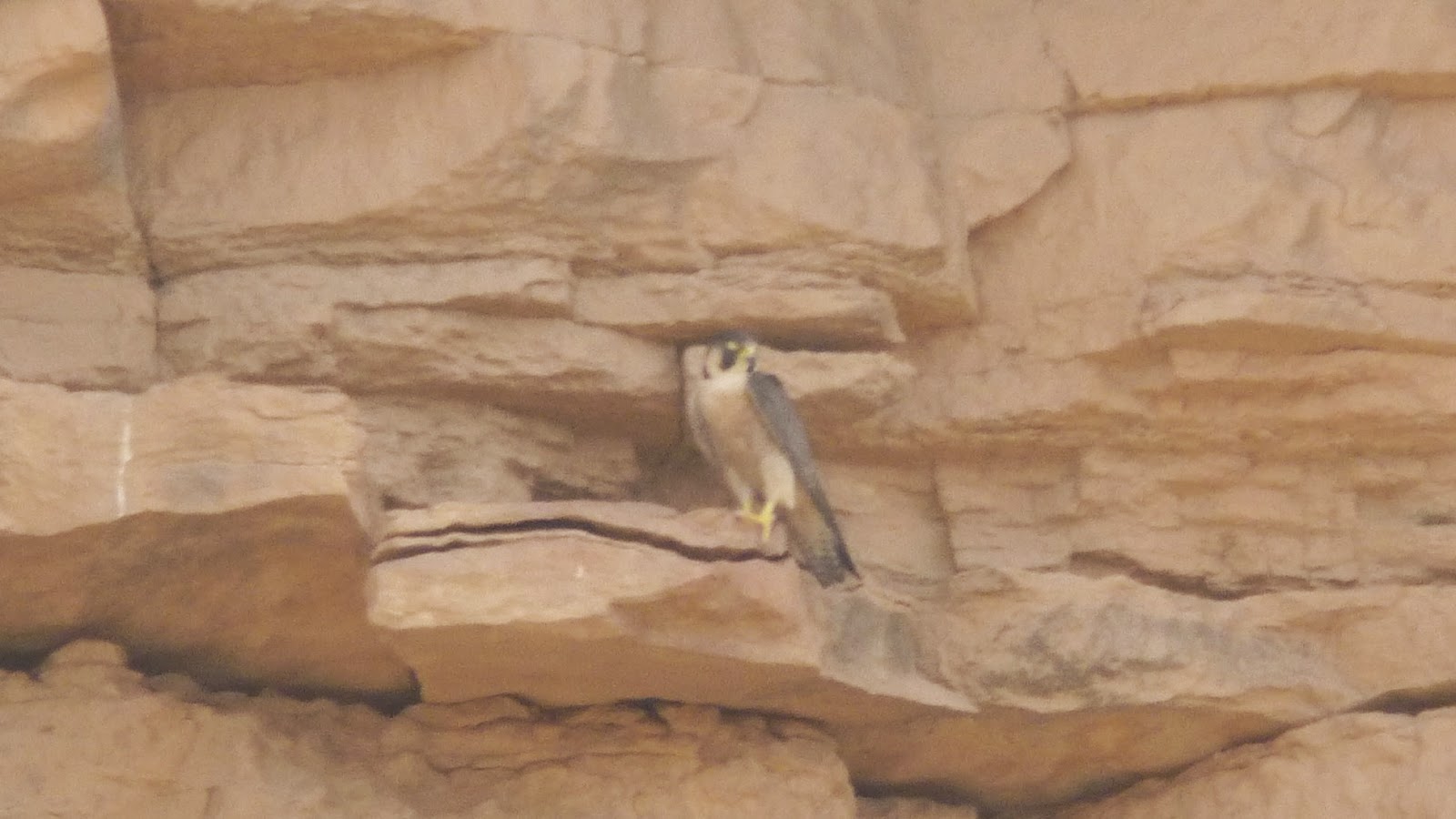 The temperature climbs up and we go to explore to the gorges around expecting to find also some shade. Just after arriving a Lanner Falcon flew at short distance above the group, trying to catch a Desert Lark.