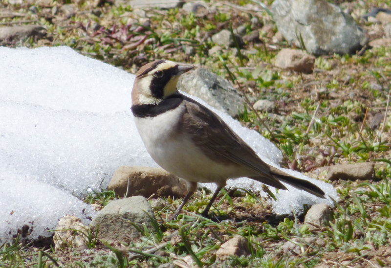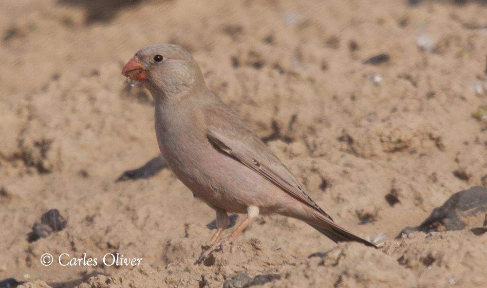 Atlas Horned Lark feeds along with Crimson-winged Finches and other high mountain birds. Image: Carles Oliver
