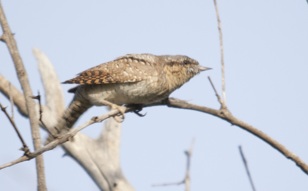 Before living Los Monegros we still decided to explore some sedimentary cliffs around our lodge. Here, the cliffs join a small river and the shadows of the trees along it are an excellent view point to scan the area. Here we found several interesting species including Spotted Flycatcher (Muscicapa striata), Penduline Tit (Remiz pendulinus), Cirl Bunting, Stock Dove (Columba oenas), Nightingale (Luscinia megarhynchos) and Alpine Swifts (Apus melba) but the best sight was that of an incredible Golden Eagle (Aquila chrysaetos) resting on the cliffs, giving unforgettable sights to our costumers via scope. Many photos were taken providing a phantastic end to our stay in the steppes…