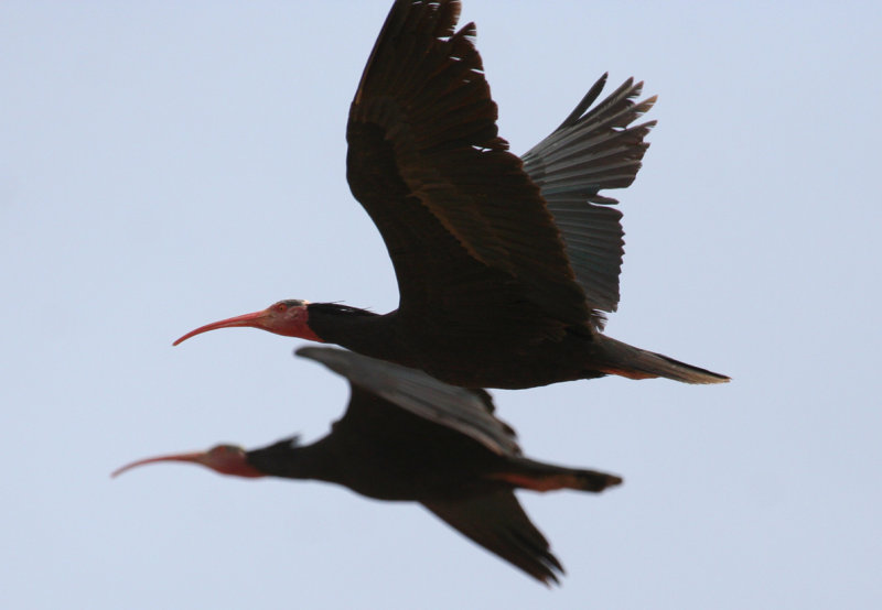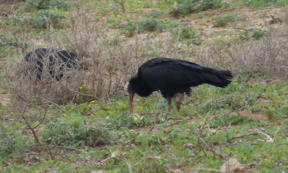 At noon, we went to enjoy our picnic boxes in one of the impressive beaches next to the estuary. Here it is possible to enjoy a good seawatching, and we are lucky enough to have a good passage of Atlantic Gannets that they. Along with them we also get a few Great & Arctic Skuas. Migration was intense at that moment, and we got flocks of Eurasian Spoonbills and Grey Plovers moving North along the coastline. Still, our main goal here was to find the critically endangered Northern Bald Ibis, that has along this coast their only three self-sustained colonies in the world. We were about to give up when suddenly 3 Bald Ibis emerged, moving towards the sea cliffs where they would spend that night!