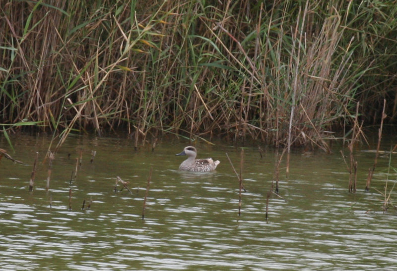 From here we walk along the Massa River following the way down to its estuary. Along the way we find a number of ducks and waders as well as Greater Flamingoes and Glossy Ibises. We also meet other birdwatchers that have seen the long staying Green-winged Teals. After a long scanning, we finally found them resting along with Northern Shovelers and our efforts were rewarded with good views on the male as it came out of the vegetation for a swim.