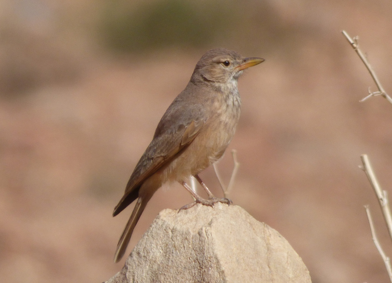 Late in the afternoon we went up into the Dades Gorge to look for Tristam’s Warbler, a species that we couldn’t find during the first day because of the bad weather. A few minutes after arriving to the spot, a male was heart singing and shortly we found the bird, that provided very good looks. Back to the accommodation we still had a final chapter for the day as a Bonelli’s Eagle flew over us at close range bringing a massive branch at the peak to land in the cliffs beyond right by the nest! This is normally a good place for Barbary Falcon, but there is no luck for this bird this year.. We get inside our accommodation, still hearing the songs of Blue Rock Thrushes and Black Wheatears arond it!