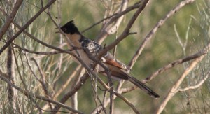 After this succesful area we moved near Ballobar to explore a some nice areas for steppe birds. We first went to find Spectacled Warbler (Sylvia conspicillata) and we found a nice pair moving around a pool in the middle of the steppes. Some Tawny Pipit (Anthus campestris) were also moving in the area. Then we visited some nice areas for Pin-tailed Sandgrouse (Pterocles alchata). We got incredible sights of them, two pairs moving less than eighty metres from us!!! We enjoyed that sight for a couple of minutes and then we left the area surrounded by several Greater Short-toed- & Calandra Larks. It was five o’clock and then we found an incredible pair of Great Spotted Cuckoo (Clamator glandarius) just moving on the steppes. This is typical place for them, coming back year after year at this same point. But this time they were really calm and we could watch them for over ten minutes and we had the chance to watch them in a copula!!!
