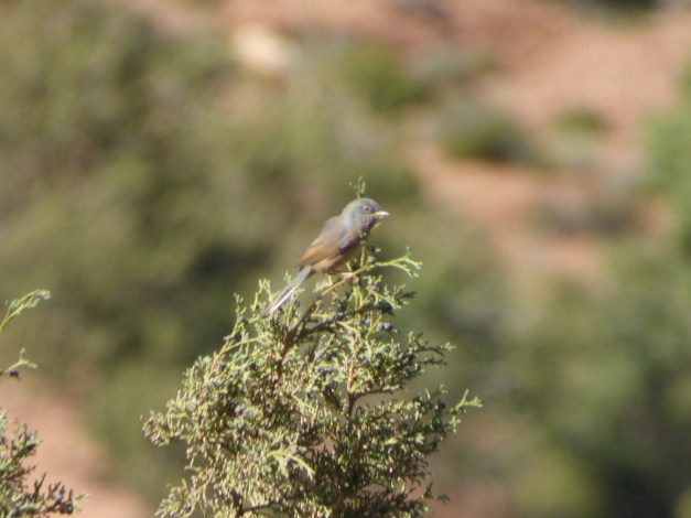 Back to the road, we started the transfer up to the top of the Atlas. Along the way we had a lovely stop to enjoy another Maghreb endemic, the Tristam’s Warbler. Scanning a lovely slope full of junipers, it didn’t take us long to locate some of them, and after some time waiting one male came down the slope and showed really well. Here we also got the very first of many Moussier’s Redstarts and lovely views on Rock Buntings plus a very distant Booted Eagle.