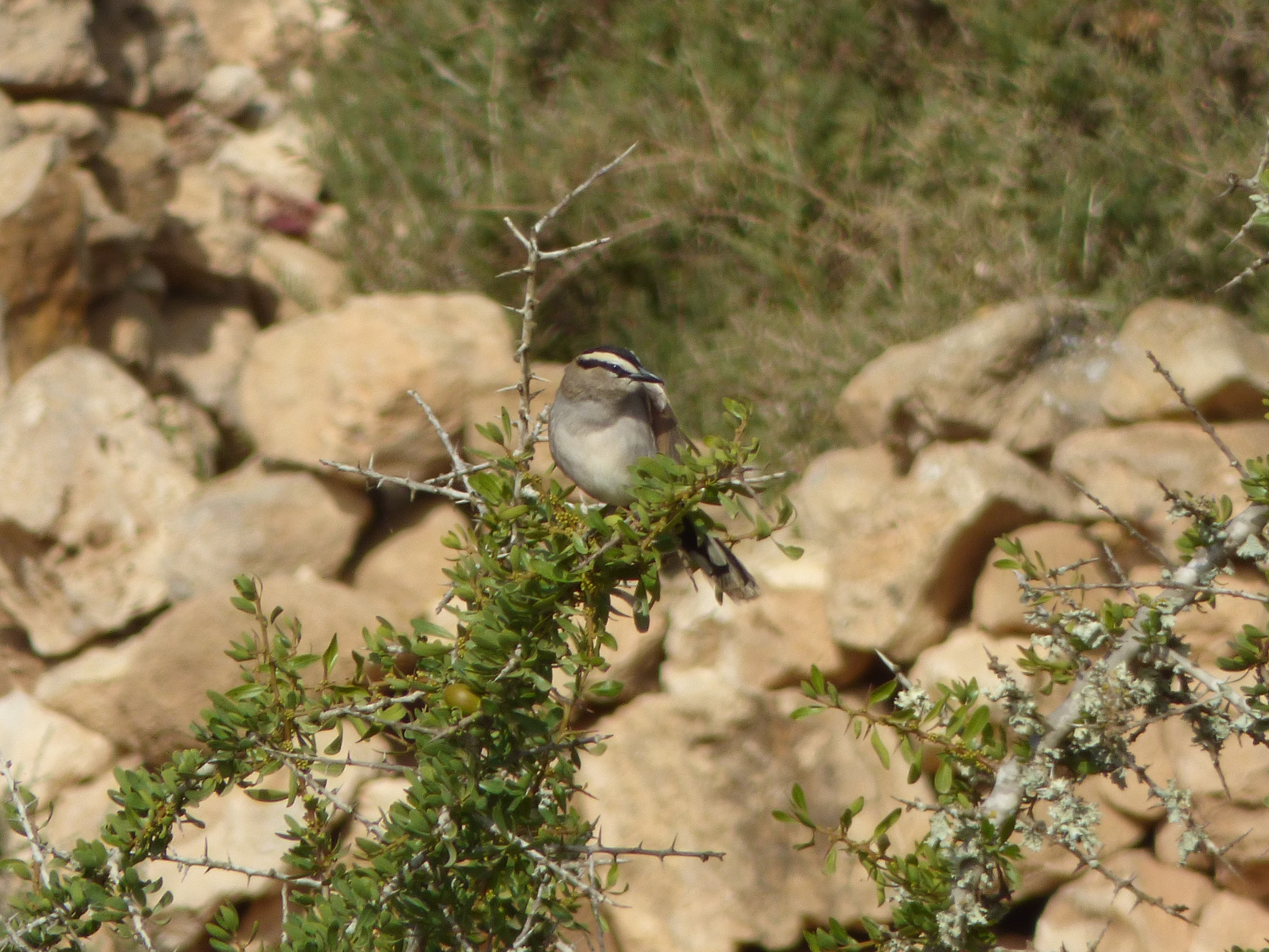 Day 3. The cloudy morning provided us with a very comfortable temperature. This day was devoted to explore the Massa River and nearby areas. After breakfast, we only had to walk a few meters to contact with the first of many Black-crowned Tchagras, wonderful bird that was calling and showing out nearby our van. A short drive of only 5 minutes allowed the group to explore a pair of corners with excellent birding. The numbers of migratory warblers were good all along the river, and in the next 90 minutes we got a good array of warblers including Sardinian, Western Subalpine, Western Orphean, Cetti’s, Zitting Cisticola, Iberian Chiffchaff, Willow Warbler, Western Bonelli’s plus first views on Western Olivaceous Warbler singing and calling in the tamarisks. Moussier’s Redstarts were a common view around while the bush were full of migratory warblers. Flocks of Spanish Sparrows were flying around, and some provided close views along with really obliging Cirl Buntings, African Chaffinches and European Stonechats. Another wonderful spot was a Little Owl perched low in a small bush.