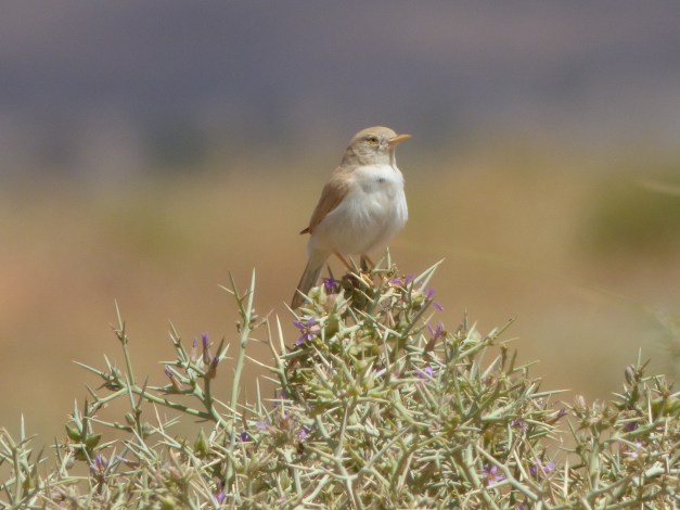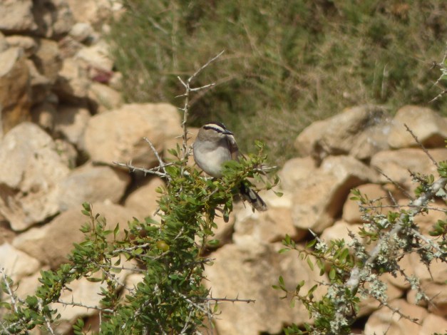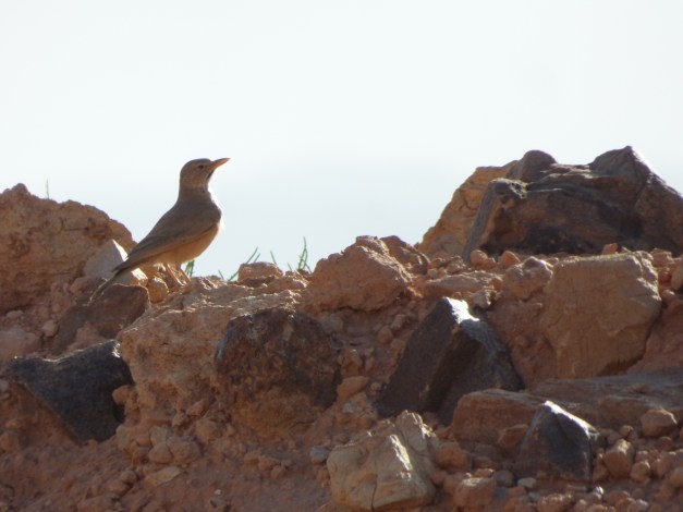 Day 6. A transtional day between the high plateaus around Boulmane du Dades and the sandy deserts around Merzouga. The morning was sunny but fresh, with a cold air coming down from the Atlas that made our first stop really comfortable. The first stop in the morning was to look for the rather scarce Saharan Scrub Warbler, an endemic form of the Levant Scrub Warbler living in the sparse bushlands along wadis but also up in the slopes in the Northern slope of the Atlas mountains.
