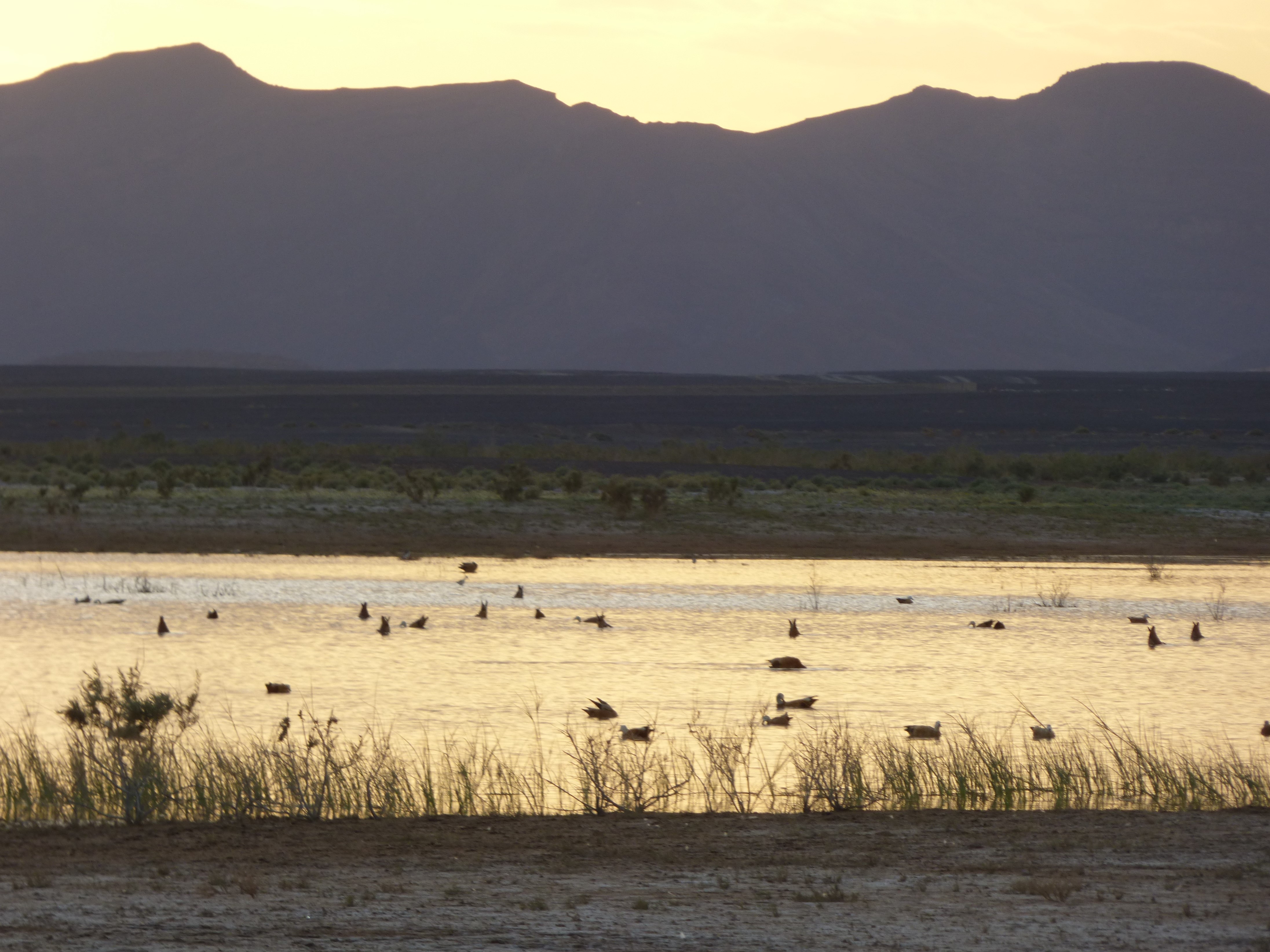 The dump around Ouarzazate covers a large area, has several access points, and to explore it is always challenging. Just arriving we founds a flock of 8 Blue-cheeked Bee-eaters feeding by the access road, and their flights and calls delighted the group for quite long. In that same place, the firsts Maghreb Larks of the trip showed up, providing the group with great views with its typical tame behaviour. Sand Martin, Western Black-eared Wheatear, Desert Lark, Willow Warbler and European Bee-eater were all noted as we moved on and lovely migratory flock of Kentish Plovers resting in the desert delighted us with excellent views before we could reach the proper place to scan for waterfowl. Yes, a small detour was necessary to arrive, and some tamarisks still remember the underneath of our van, but we arrived!