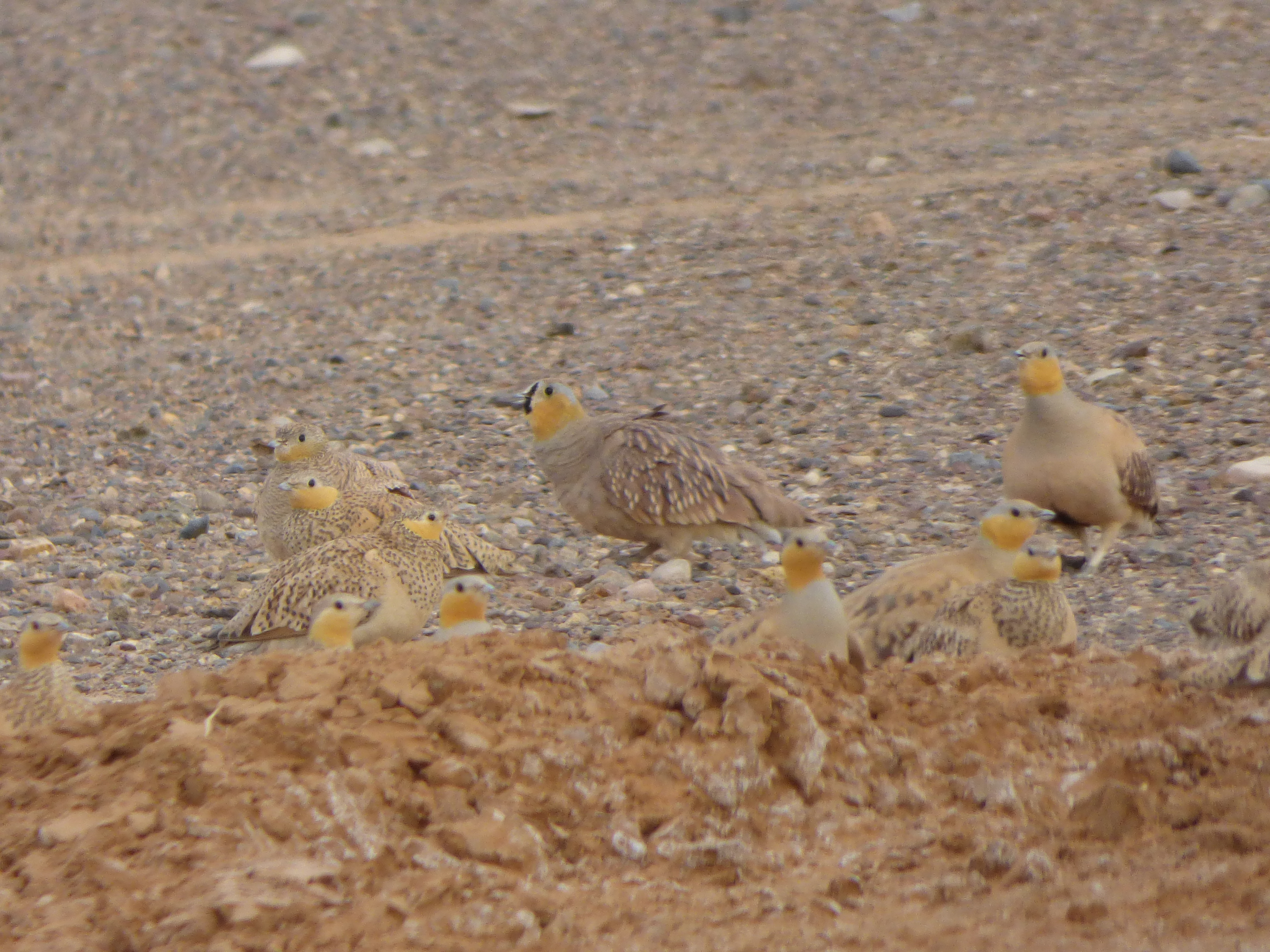 In the afternoon the group agreed to do a good exploration some tens of kilometers South from Merzouga. This area, not really explored by most birdwatchers, provided us with a quite pristine landscapes, as it once was Merzouga, along with excellent numbers of Desert, Bar-tailed & Greater Hoopoe Larks. Here Carmine found a lovely flock of 8 Crowned Sandgrouses that provided the group with gorgeous views and good photo chances!