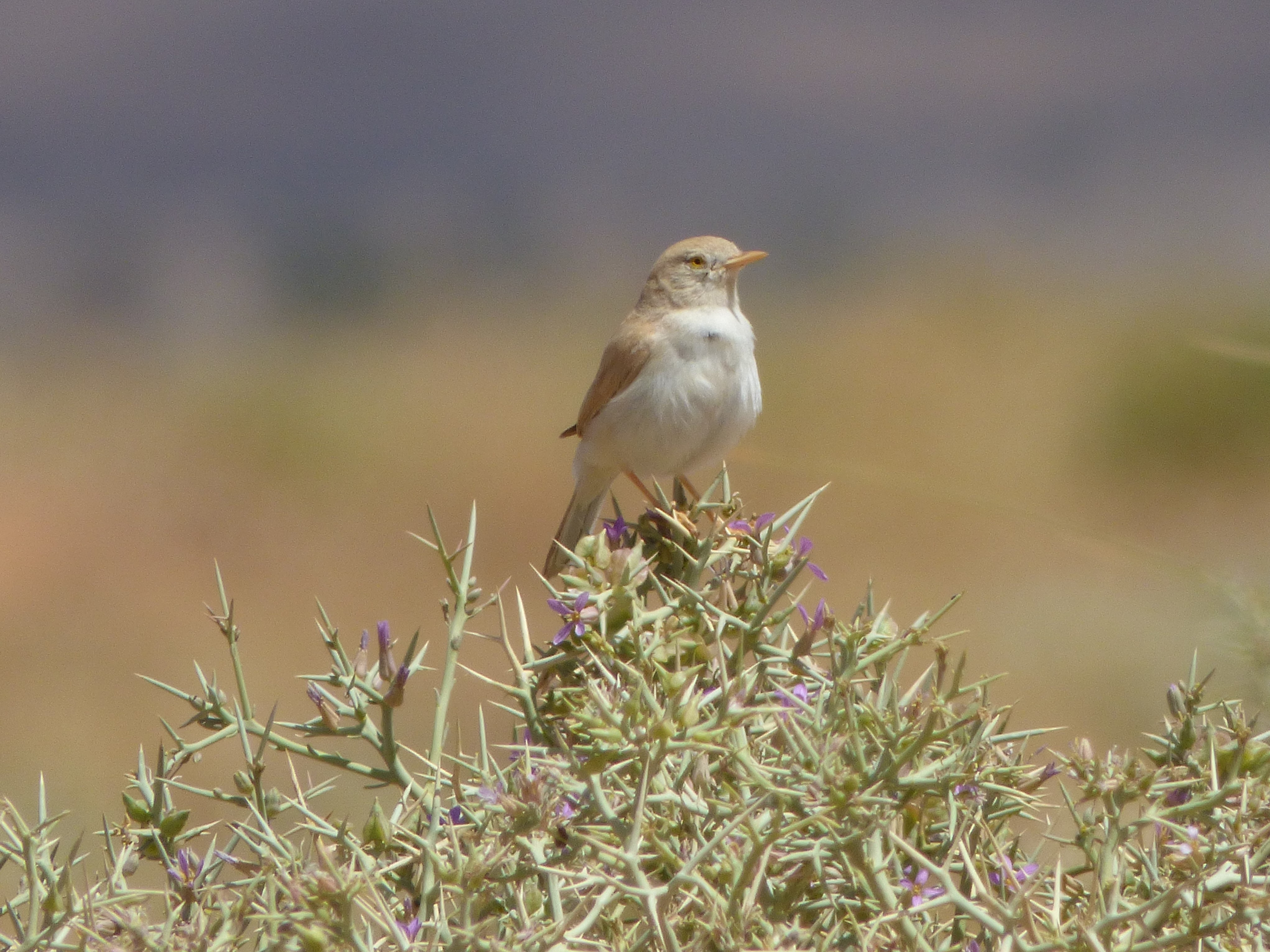 Our short walk produced almost immediately the first Bar-tailed Larks of the trip as well as confiding Mediterranean Short-toed Larks. Walking along the wadi we had a good set of the typical species living in this kind of habitats including Spectacled Warbler, Trumpeter Finches and Deser Wheatear plus migratory species such as Western Subalpine Warbler and Northern Wheatear. After a good while scanning the area we were starting to think about going somewhere else when Rob found 2 Scrub Warblers feeding at close range from us.