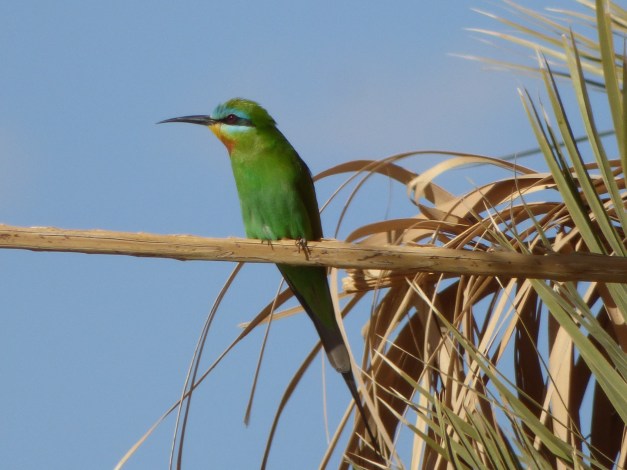 Firstly we explored the grounds of a nearby hotel, where we got more common migratory birds plus Western Orphean Warbler, Eastern Olivaceous Warbler, Common Whitethroat, European Bee-eater and Woodchat Shrike. From here we drove the short distance to the major palm grove in the area, where we had double figures of Common Whitethroat and Willow Warblers while Garden Warbler, European Turtle Dove and Bluethroat were added to the list. Here we enjoyed also great views on a family group of Fulvous Babbler, including an aberrant individual! This species, anyway, was already seen for some of the tour participants in a pre-dawn walk around our accommodation and shortly the day before in the desert!
